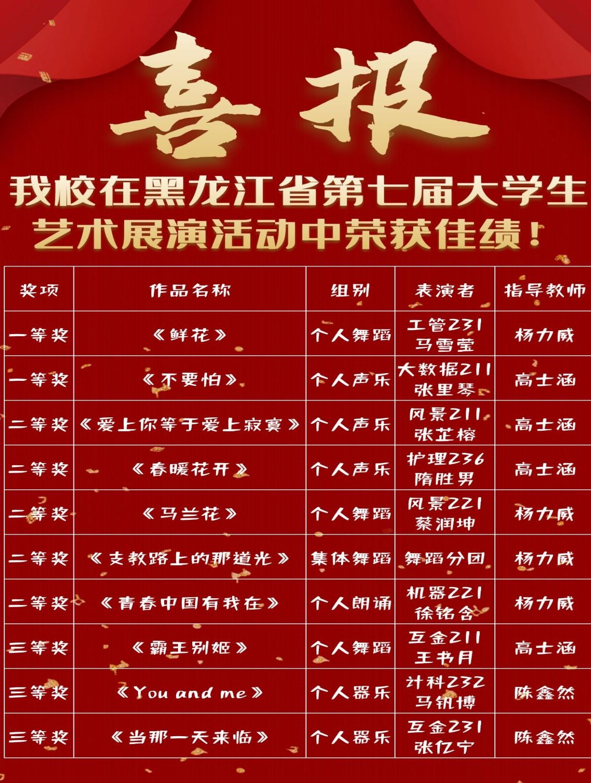 近日,由黑龙江省教育厅主办的第七届大学生艺术展演活动获奖名单公布,伟德官网共获奖11项。其中,一等奖2项、二等奖5项、三等奖3项,优秀组织奖1项,在获奖层级、获奖数量上均取得了历史性突破。黑龙江省大学生艺术展演活动每三年举行一次,是全省最具含金量的大学生艺术盛会,是高校落实“立德树人”根本任务,也是深入推进铸魂工程的重要方式。本届大学生艺术展演活动以“厚植家国情怀,涵养进取品格”为主题,全省高校2万...