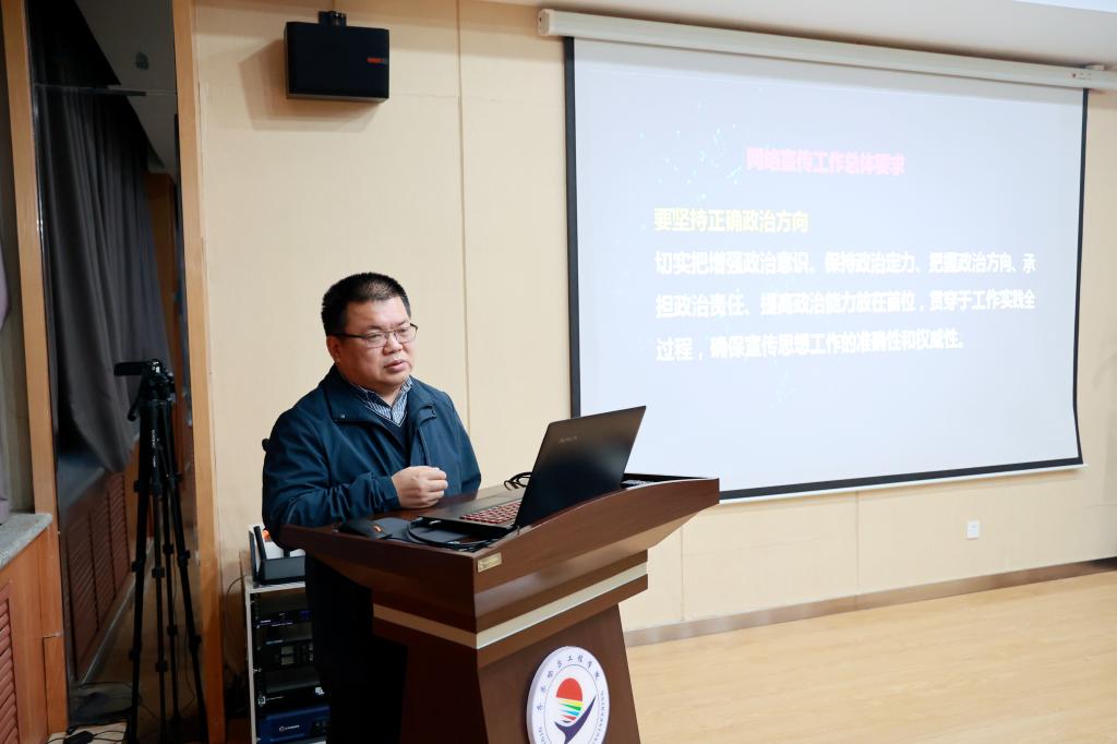 副书记张振笋在讲话中科学分析研判了学校网络及新媒体宣传工作面临的形势,就做好网络宣传工作提出三点要求:一是要坚持正确政治方向;二是要宣传学校办学特色;三是要提升网络宣传能力。