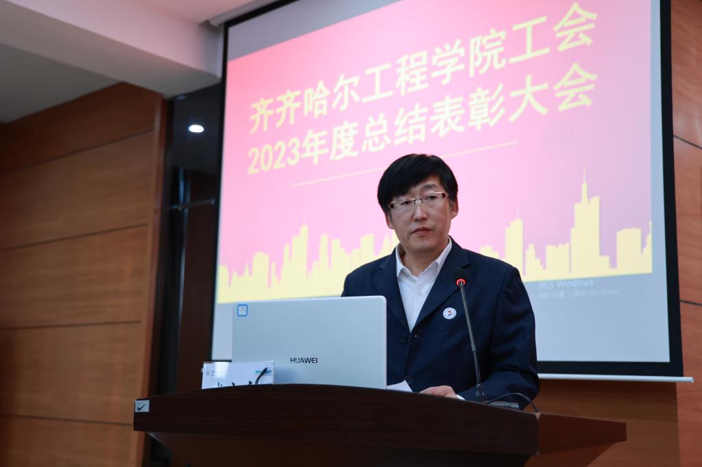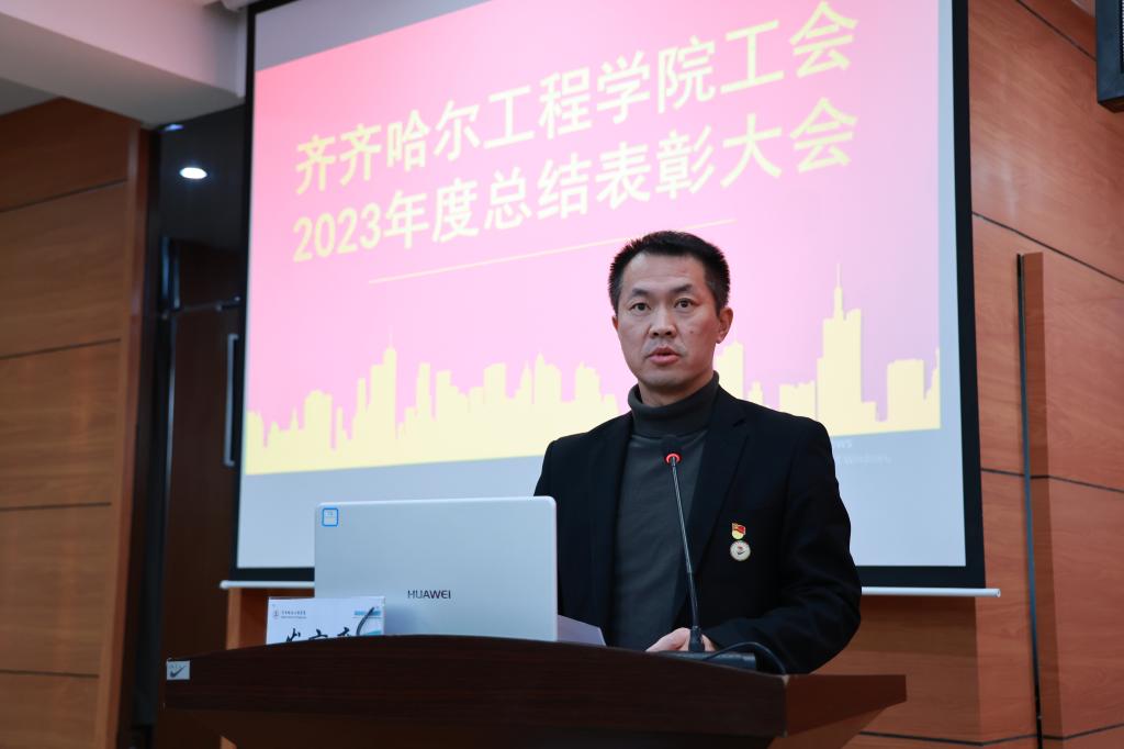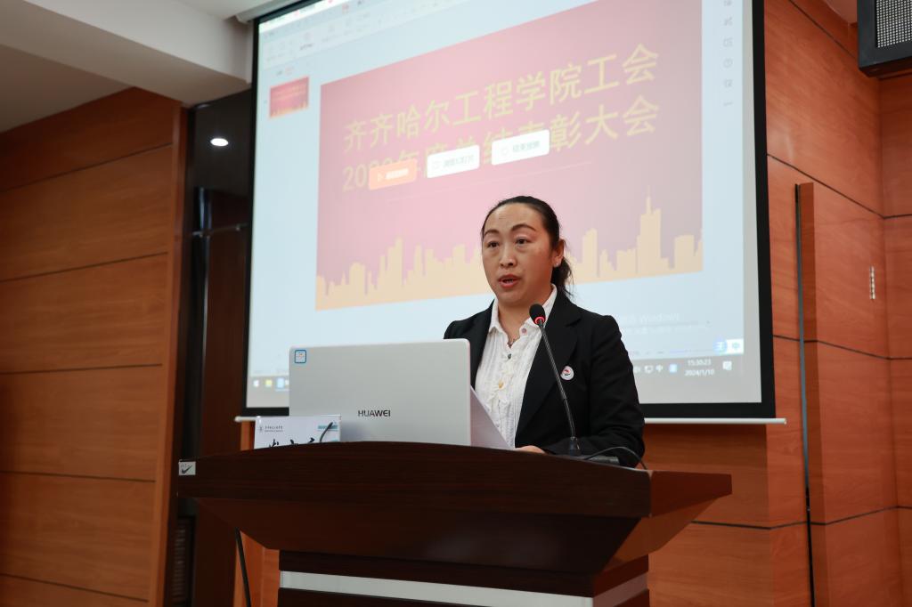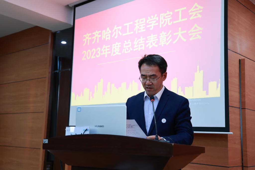 学校工会委员郑洪波宣读《关于表彰伟德bv1946官网工会2023年度星级基层工会和优秀个人的决定》。