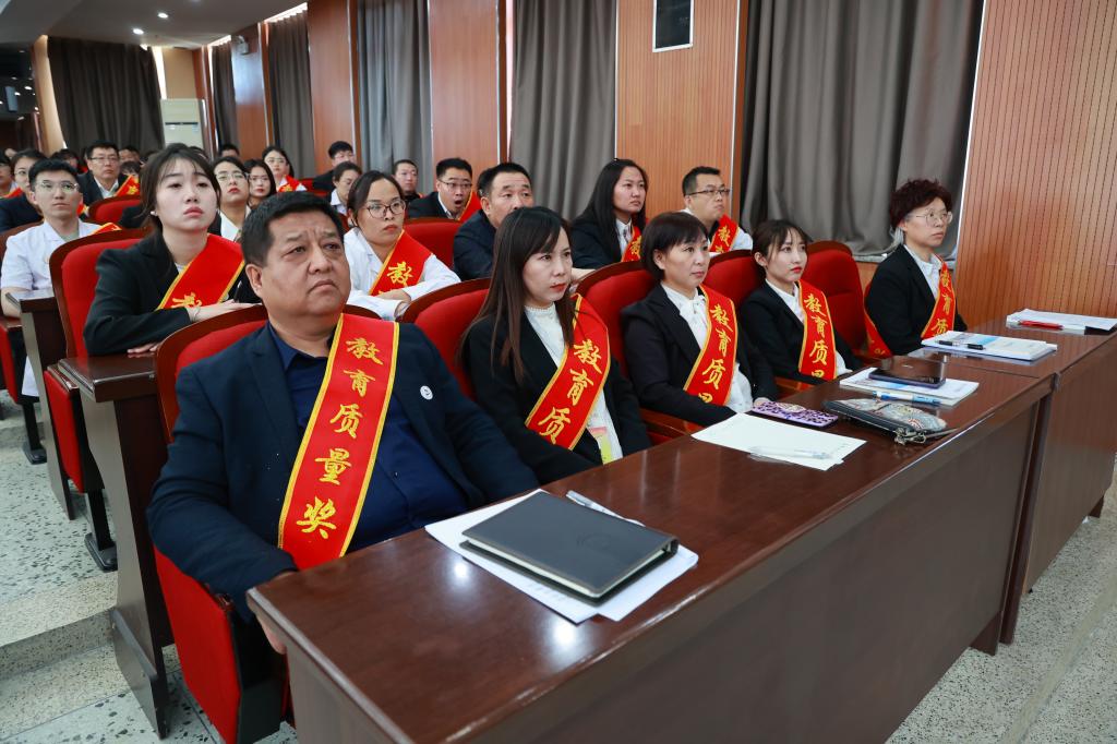 理事长曹勇安代表学校向获奖教师表示热烈祝贺,向全校教职工致以五一节日问候,并充分肯定了教师在教育教学工作中取得的成绩。指出,学校教育质量奖大会已召开十届,每届都有不同变化,都会在实现一个目标取得丰硕的成果后,又向下一个目标努力前进,这是学校带领全体教职工共同努力奋斗的结果。下一步,学校将对接“一带一路”沿线国家,开展教育培训合作,学生的就业目标不仅限于国内,要扎根中国,放眼世界,为“一带一路”的发展提供人才和教育的支持。同时,希望受到表彰的教职工继续努力,在今后的工作中开拓创新,发挥示范引领作用,在教育教学活动中取得新的、更大的成绩。