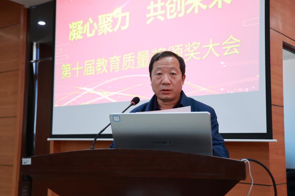 院长曹然彬宣读《伟德bv1946官网关于颁发第十届教育质量奖的决定》。