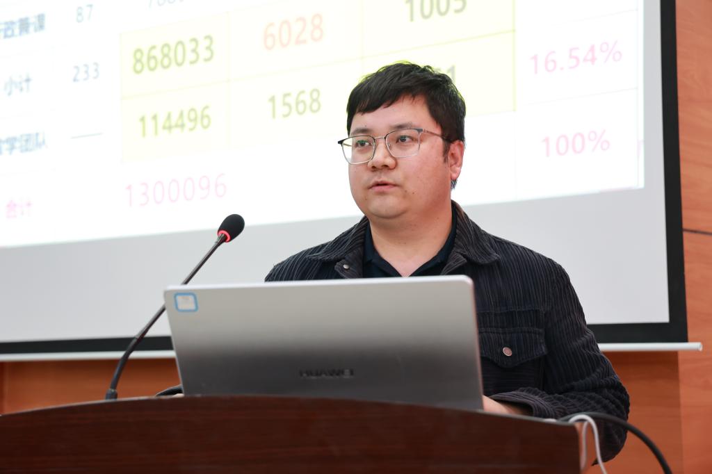 教务处副处长李文禹作2023——2024学年第一学期教学质量奖评定情况汇报。围绕教学质量奖评定总体情况、教学质量奖评定介绍、2023——2024学年教学质量奖评定导向三个方面进行说明。提出,专任教师要持续关注教学成果产出,提质增效;持续课程数智化建设,打造特色;年终质量奖关注教研成果转化,建设教学资源库。教学团队要统筹专业系统建设,关注专项评估;靶向审核评估要点,注重成果导向。