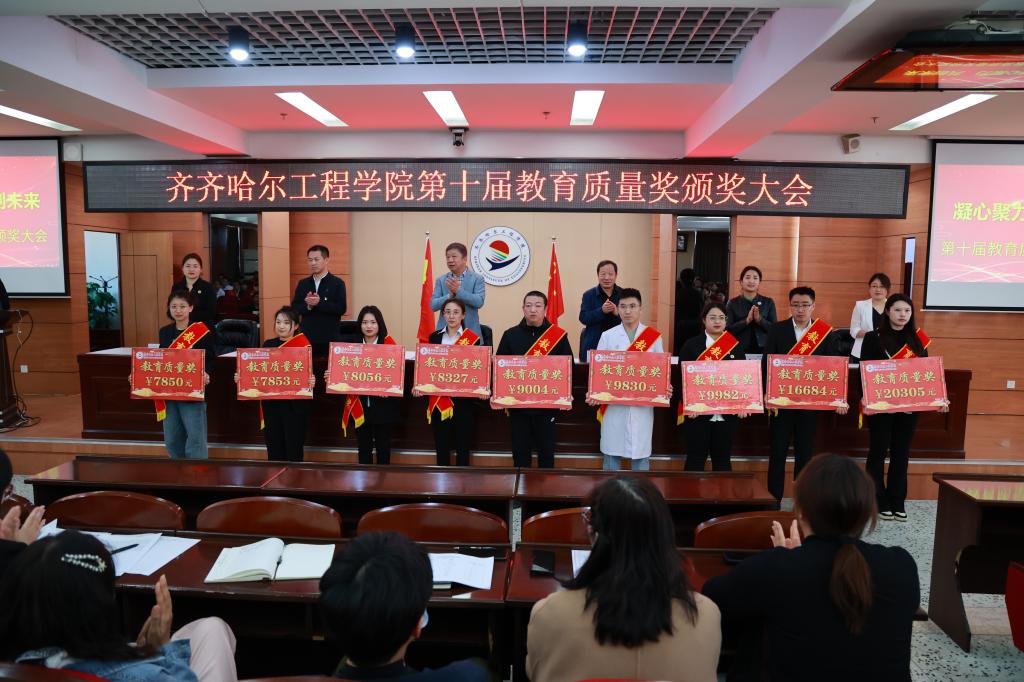 4月30日下午,学校第十届教育质量奖颁奖大会在图书馆601报告厅举行。理事长曹勇安、院长曹然彬、党委书记郭伟东、常务副院长陈景鑫、副院长白雪、副院长张静出席会议。全面质量办公室副主任张洪岩主持,300余名教职工代表参会。