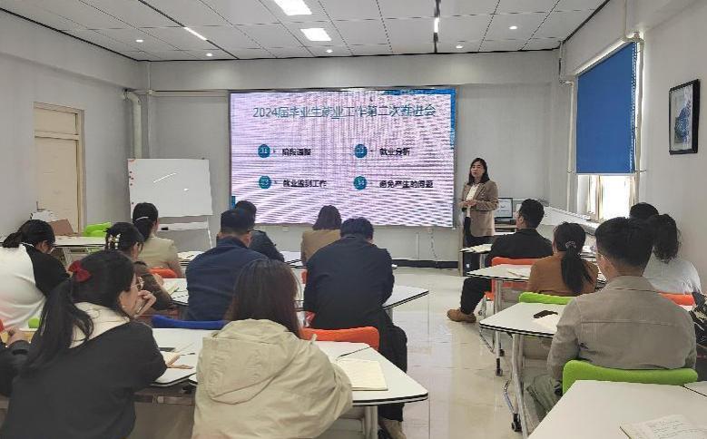 康静对2024届毕业生就业情况进行阶段性总结,通报了各专业就业工作推进情况,并且对现今就业形势进行分析以及对毕业去向登记确认与信息核验方面提出新的要求,找出各专业毕业去向落实工作中的难点,全校各系各专业要进一步落实落细就业政策,压实各方工作责任,优化各系指导服务,通过开拓新思路、寻找新方法,实现毕业生轻松就业、精准就业。
