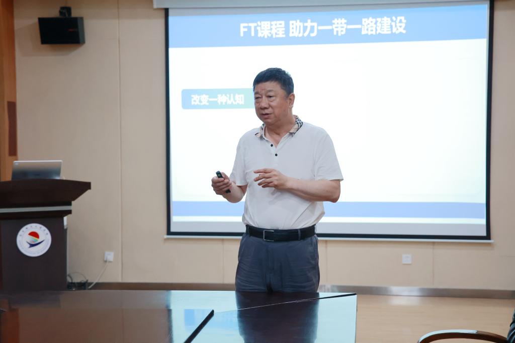 会上,曹勇安对蒋百军等人的到来表示欢迎,对学校历史沿革及未来发展规划进行了介绍,通过FT课程建设、实践教学、一带一路人才供给属地化等方面,深度阐释了“FT课程助力‘一带一路’建设”,并提出深化两国人文教育交流,促进民心深入沟通的美好愿望。他希望通过本次洽谈,进一步深化校企合作,共建校外实践教学基地,在人才培养、专业建设、实习实训等方面开展深入合作,形成合作共赢、共谋发展的良好局面。