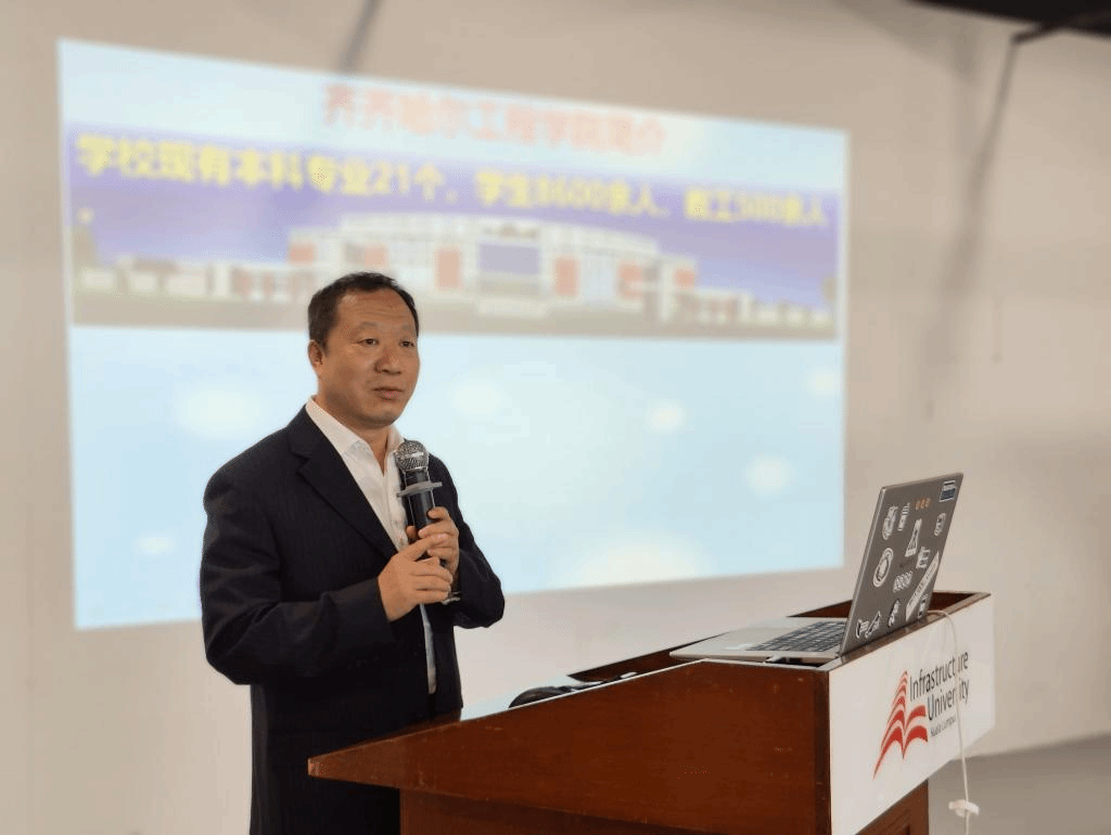 陈锦松介绍了吉隆坡建设大学的基本情况。吉隆坡建设大学是马来西亚一所高水平私立大学,设有建筑与环境建设学院、商业、信息与人文科学学院,工程、科学与技术学院三个二级院及基础和通识课程中心、研究生研究中心,有19个本科专业,多个预科、专科、硕士及博士专业。