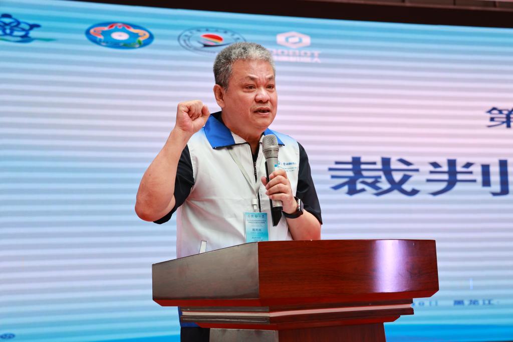 裁判长、哈尔滨石油学院创新创业学院院长王滨生代表全体裁判员宣誓,他表示,将本着公平、公正的工作准则,和认真负责的工作态度,坚决服从大会的组织,严格遵守竞赛规则和裁判员纪律。在比赛中尊重参赛选手,文明裁判,严肃认真,秉公办事,以良好的道德风尚和专业的裁判素质确保本次比赛顺利进行,圆满完成各项裁判工作。预祝各参赛代表队取得优异成绩。祝本届大赛圆满成功。
