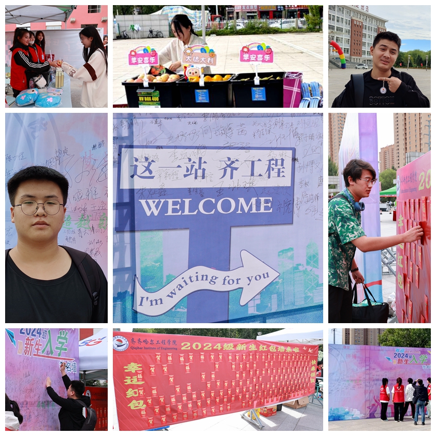 学校门口设立签到墙,新生抽幸运红包,领奖品