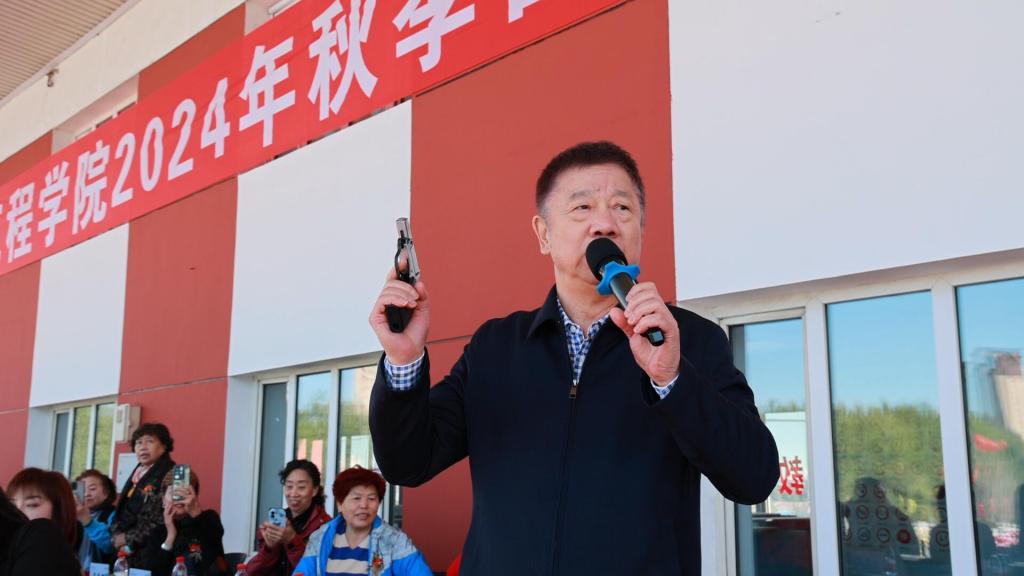 院长曹然彬在开幕式上致辞。曹然彬代表学校党政班子,向各位嘉宾表示热烈欢迎,向全体师生员工致以诚挚问候,向运动会工作人员表示衷心感谢。他指出,学校历经33年,始终坚守“艰苦创校、课程立校、文化治校、精神兴校、信仰传校”的初心。2024年,学校锚定“迎接审核评估”这个总目标,传承“我们面前无困难,困难面前有我们;要为成功想办法,不为失败找理由”的亮剑精神,各项工作均取得了可喜的成绩。希望全体师生以本届运动会为契机,以强健的体魄、奋进的姿态和饱满的热情,为学校的高质量发展贡献力量;全体工作人员务实履职,纪律严明,公平裁判,确保大会顺利进行;全体运动员遵守比赛规则,以良好的体育道德风尚,赛出水平、赛出友谊。