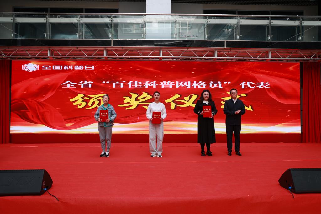 仪式上,马哲向获得全省“百佳科普网格员”代表颁奖。