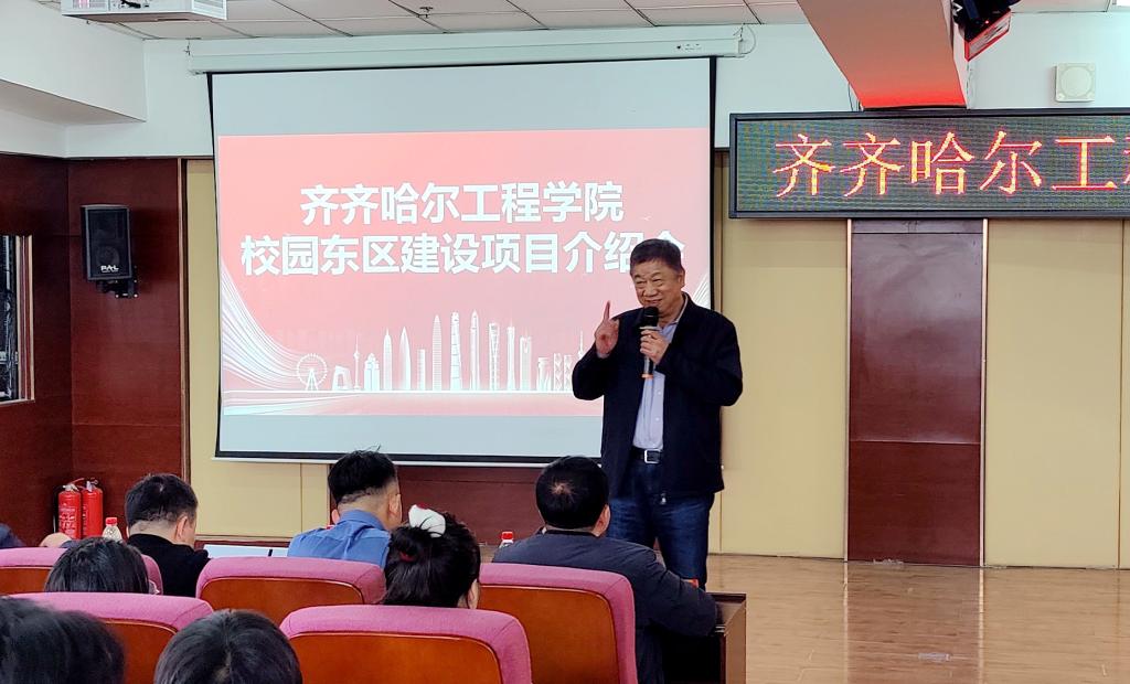 10月29日下午,学校在图书馆501报告厅召开校园东区建设项目介绍会,理事长曹勇安、院长曹然彬、基建办主任崔晓东及相关部门负责人,12家设计单位代表、50名学生参加会议。
