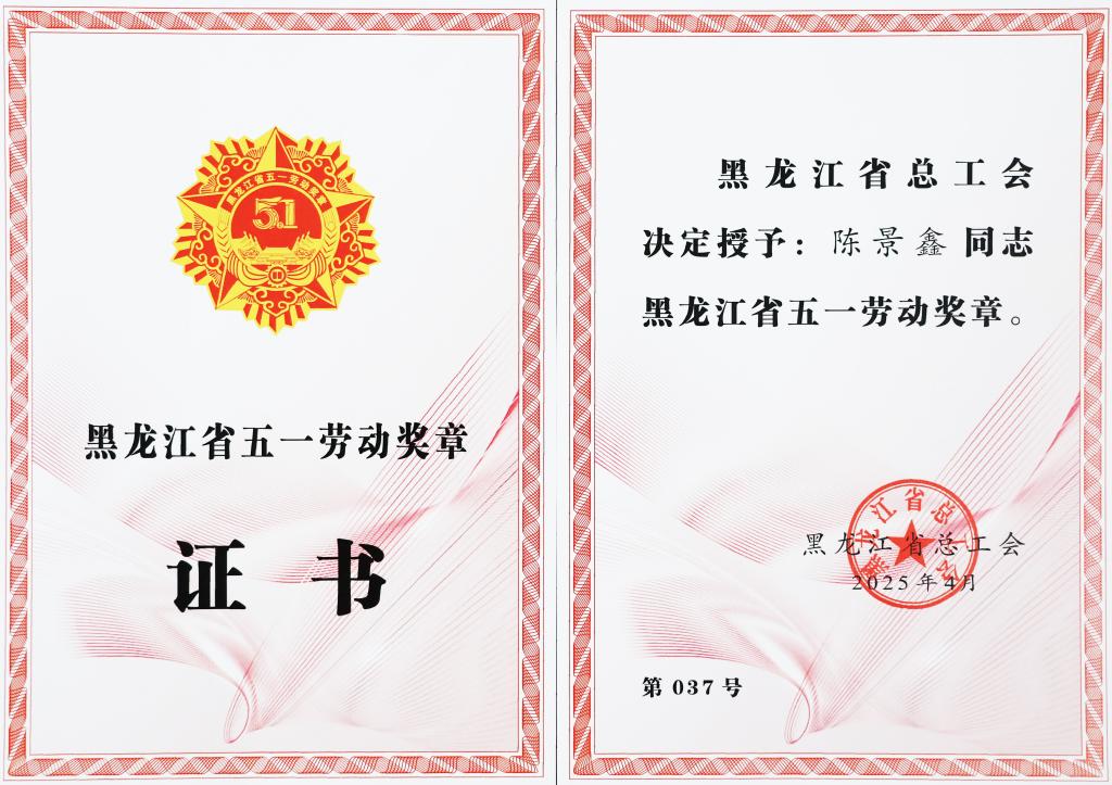 4月29日,永远跟党走 奋进新征程——庆祝中华全国总工会成立100周年省五一劳动奖、工人先锋号颁奖暨第二届“龙江工匠年度人物”发布仪式在黑龙江广播电视台演播厅举行。伟德官网党委副书记、副院长陈景鑫荣获黑龙江省五一劳动奖章。齐齐哈尔市共有九名各行业人员获此殊荣。