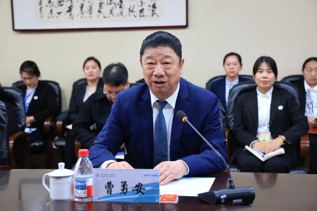 随后,曹勇安代表学校致辞。他对专家组的到来表示热烈欢迎,对专家组在线上评估期间的辛勤工作和专业指导表示衷心感谢。曹勇安介绍了学校的创办历程与办学特色等情况,阐述了自己的教育教学理念和教育梦想以及他守望教育初心,践行育人使命,建设百年老校的教育情怀。他表示,学校高度重视本科教育教学审核评估工作,本次专家入校考察是对学校本科教育教学工作的深度检阅,学校将实事求是,全力配合专家组工作,虚心接受意见建议,扎实做好整改提升,切实将“以评促建、以评促改、以评促管、以评促强”要求转化为推动学校教育教学高质量发展的持续动能。