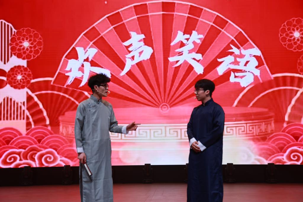 随后,大学生艺术团表演的舞蹈《这就是街舞》,将街舞的动感节奏与青春活力完美融合,用充满力量的肢体语言彰显了同学们积极向上的精神风貌;机电学院的相声《欢声笑语》,演员聚焦校园日常,以校园生活为素材巧妙转化为包袱,营造轻松观演氛围;辅导员团队演绎改编歌曲《辅导员阵线联盟》,以原创歌词回顾学生成长历程,从入学引导到日常关怀,表达对毕业生未来的殷切期望。