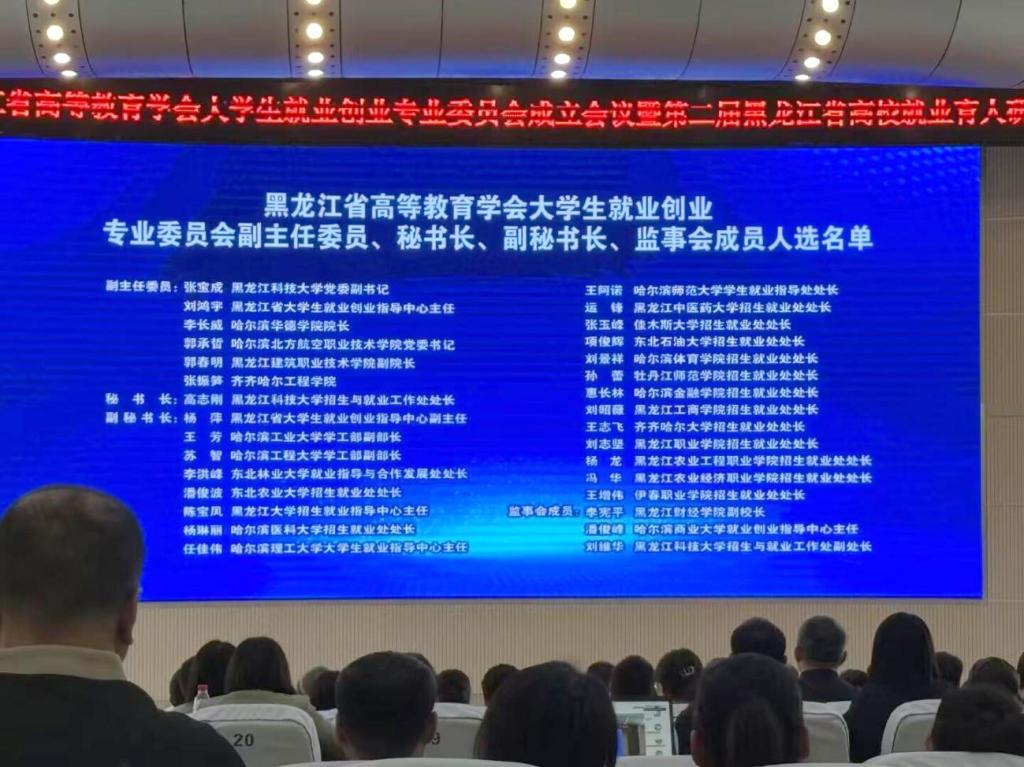 近日,黑龙江省高等教育学会大学生就业创业专业委员会成立会议暨第二届黑龙江省高校就业育人研讨会在黑龙江科技大学举办。会议审议并通过了《黑龙江省高等教育学会大学生就业创业专业委员会规程》,选举产生了第一届专委会主任委员、副主任委员、秘书长、副秘书长和监事会成员。伟德官网监事会主席张振笋被任命为副主任委员。