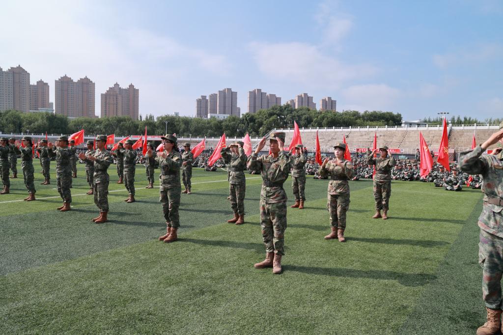 9月1日上午,学校2025级新生开学典礼暨军事技能训练开营仪式在学校体育场举行。学校党委副书记、副校长陈景鑫,龙沙区人民武装部副部长邹向华出席仪式。学生工作处处长王丽萍、副处长兼武装部部长孙晓芳,各学院院长、党委副书记,全体学长教官、参训新生及部分新生家长代表共同参加。仪式由校团委书记高士涵主持。
