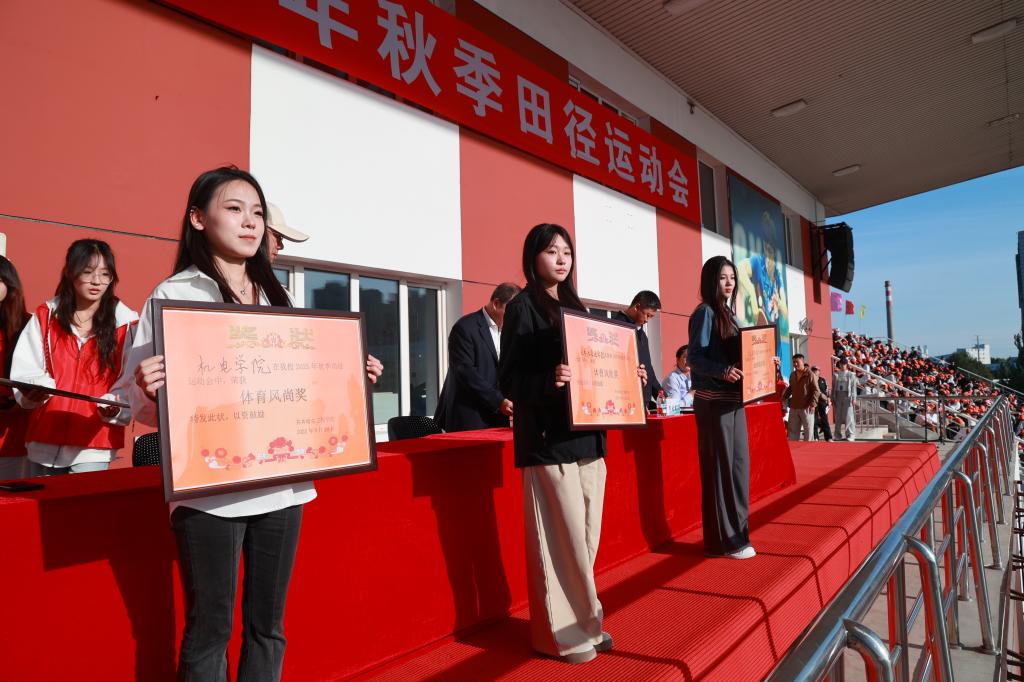 党委书记郭伟东致闭幕词。郭伟东代表学校党政领导班子对本次运动会的成功举办,以及师生运动员所取得的优异成绩表示热烈的祝贺,向为赛会付出辛劳的裁判员及全体工作人员表示衷心的感谢。他指出,本次运动会赛程顺畅、组织有序,展现了师生团结拼搏、追求卓越的“亮剑”精神,生动诠释了“更快、更高、更强、更团结”的体育内涵。他提出三点希望:一是全体师生要将赛场上的拼搏精神延续到日常工作和学习之中,以更加强健的体魄和坚定的意志,投身于学校高质量发展进程中;二是要以“共同体意识”凝聚发展合力,把赛场上的协作精神切实转化为推动产教融合、学科建设的实际行动;三是要以创新思维和实干担当,共同助力学校“百年老校”目标的实现。他勉励全体师生以“小我”的精彩,成就“大我”的荣光,汇入新时代的奋斗洪流,用实际行动回应时代召唤。