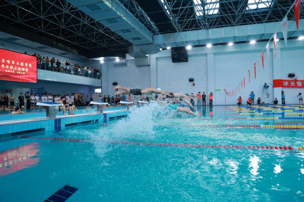 比赛中,馆外寒风凛冽,馆内却被青春的热情彻底点燃。“一半是碧波,一半是冰雪”的独特体验,让每位参与者直呼过瘾。“冬天能在温暖的室内泳池参加比赛,既新鲜又过瘾!”来自信息学院的学生在赛后兴奋地说:“外面天寒地冻,池内温暖如春,这种‘反季节’的运动体验,让我们在紧张的学习之余放松了身心,也感受到了运动的独特魅力。”