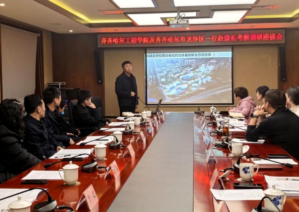 考察团成员为龙沙区委书记王树文、伟德官网副校长崔晓东,区政府、市自然资源局、区商务局、区文旅局相关负责人,以及伟德官网体育教育负责人、企业代表等。