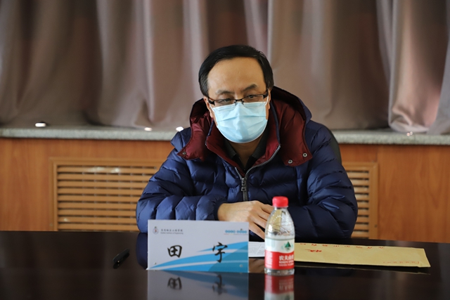 在学校图书馆603会议室,田宇组长向学校领导介绍了此次督查的背景、目的和督查内容及要求。校疫情防控领导小组组长、院长曹然彬从“学校党政主要领导履职尽责情况”“师生员工排查情况”“开学准备情况”“存在问题和建议”等四个方面,对学校疫情防控期间开展的工作和开学前的准备工作做了数据详实的汇报。校疫情防控领导小组组长、党委书记李敏义,党委副书记王祓罹、副院长白雪参加汇报。