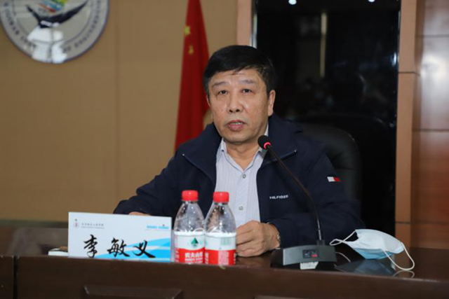 校党委书记李敏义主持报告会。校领导曹勇安、李敏义、蒋春艳、张振笋,各部门领导及专业长、教师、辅导员、学生代表约150人在图书馆601报告厅聆听报告,各系师生代表分别在本系分会场同步收看报告会,其他师生线上参会。