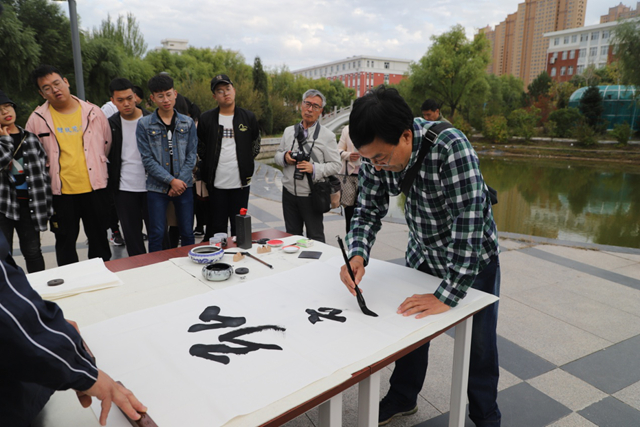 9月24日下午,由校党委宣传部与团委联合举办,齐工程书法爱好者协会承办的学校建校三十周年系列活动之“秋到易湖畔·墨香飘校园”——鹤城书法家齐工程笔会在伟德官网举行。