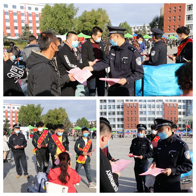 学校保卫处联合齐市反诈骗中心、齐市公安局高新技术产业开发区分局,在迎新现场发放致学校师生的一封信,提醒师生防止电信网络诈骗。