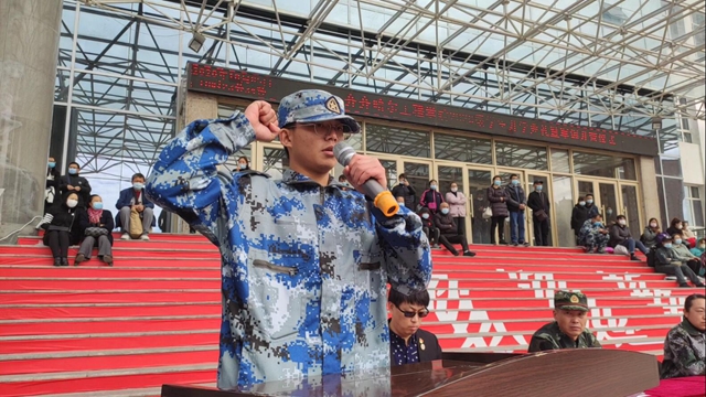 他在讲话最后激励同学们:希望同学们能够以军人的血性和组织纪律性,面对今后工作和生活中的各种艰难险阻勇往直前,加强组织纪律性,以团队形式去学习工作,践行学校倡导的“为融入社会走进来,为服务社会走出去”,我们期待着你们的成功!
