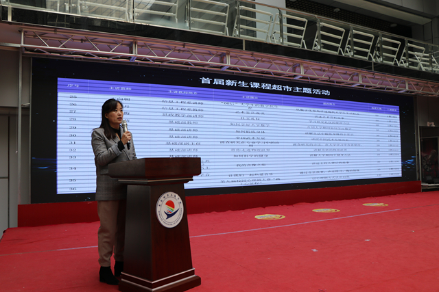 在9日中午的新生“课程超市”启动仪式上,学生发展中心负责人康静介绍了活动安排,张振笋副院长为首批课程导师颁发聘书,师生代表在发言中表达了对“课程超市”期待。