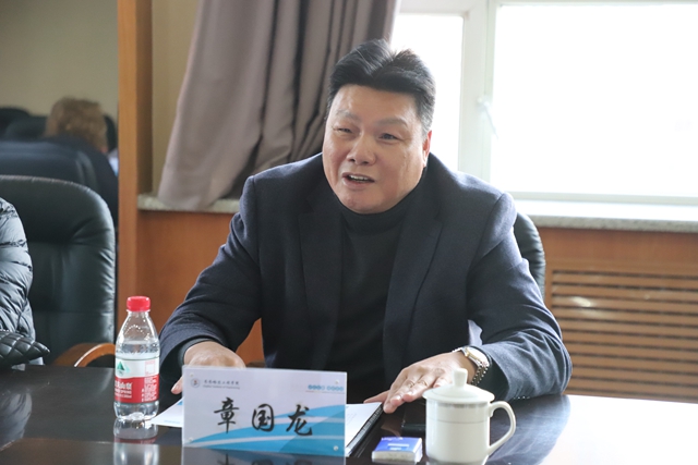 商会会长、黑龙江聚力电气公司董事长章国龙畅谈了来校的感受,他首先对学校取得的成就特别是对曹勇安理事长的创业精神表达敬意。同时介绍了齐齐哈尔市温州商会发展现状,表达了校企合作,共建事业发展平台的愿望。