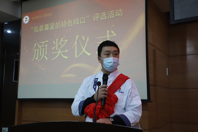 获奖代表在发言中感谢学校给业户提供为师生们的餐饮服务平台,表示在今后的工作中要坚持做到:严格膳食管理,保证饮食卫生,做到品种多样化和饮食均衡,保质保量供应;规范日常操作细节,提高工作质量,增强服务意识;严格落实食品卫生安全工作制度,加强预测并及时反馈,把档口办得让师生满意。