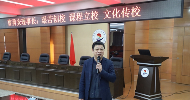 学校文化之一:艰苦奋斗的创业精神。曹勇安理事长强调只有了解学校历史文化,才能融入学校文化中。他满怀深情、如数家珍回顾了自己前20年在公办教育,后30年创办民办学校以及一代人艰苦奋斗的历史,从当时学校“广告是赊的,校舍是租的,教师是聘的,校牌是借的”,到民办“托管”公办的试验,为政府排忧,为企业解难,将政府“委托管理”濒临倒闭的学校, 打造成为品牌学校,创造的“委托管理”的模式及词汇,被写入《国家中长期教育改革和发展规划纲要》中,第42条、第67条。曹勇安理事长还历数了学校改革发展的脉络,从为落榜生举办自考班到兼并公办,奔普通高校;从委托管理,做教改试验到停招自考,专心办高职;从动议升本,八年磨一剑到启动智能化的课程建设。他运用大量的数字、文件、不同阶段的会议、接受考察评估图片展示了学校在每一个阶段的发展进程和成果,2021年学校顺利通过教育部本科教学工作合格评估,标志着学校发展以此为起点,迈向了新台阶、开启了新征程。