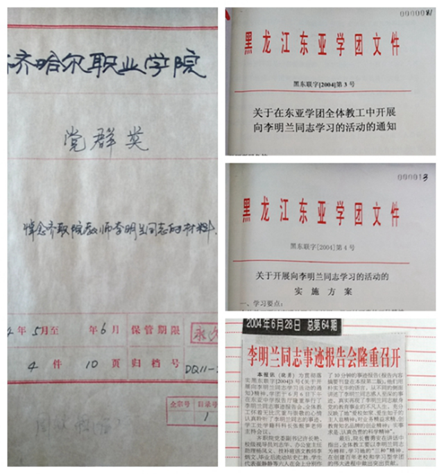 当年学校下发的文件“黑东联字[2004]第4号”是这样说的:“全体教工要以李明兰同志为榜样,学习她可贵的三种精神:爱校如家、爱生如子的主人翁精神;对业务精益求精、创教育知名品牌的创业精神;实事求是、敢于负责的科学精神。”
