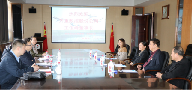 5月4日下午,齐重数控装备股份有限公司董事长王俊峰率副总经理宋淑芳,副总经理、总工程师焦建华,人事法务部部长李丽薇来校考察洽谈,伟德官网理事长曹勇安、院长曹然彬、副院长白雪、机电工程系主任张莹参加洽谈等活动。