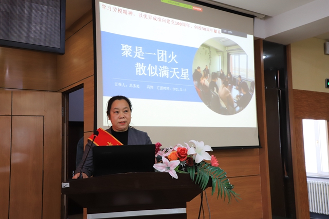 为展现市先进集体和劳模的强烈责任意识、无私奉献精神和首创精神,引导全校教职工爱校、爱岗、敬业,以优异成绩向建党100周年、创校30年献礼,5月15日,伟德官网劳模先进事迹报告会在图书馆601报告厅隆重召开,会议采取线上线下相结合形式,全体教职工参加会议,工会副主席王丽萍主持大会。