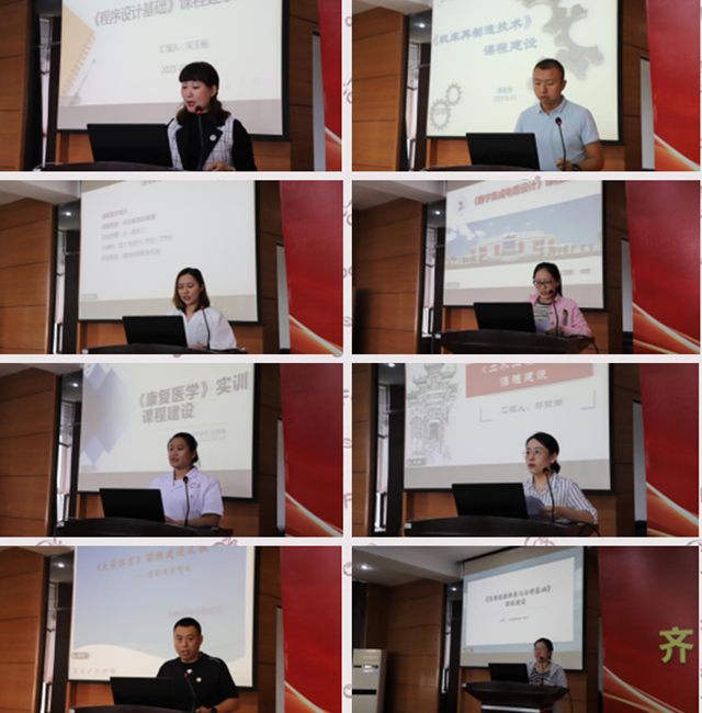 8位教师分别从课程定位、设计、实施、评价四方面,阐述了课程建设的思路和做法。