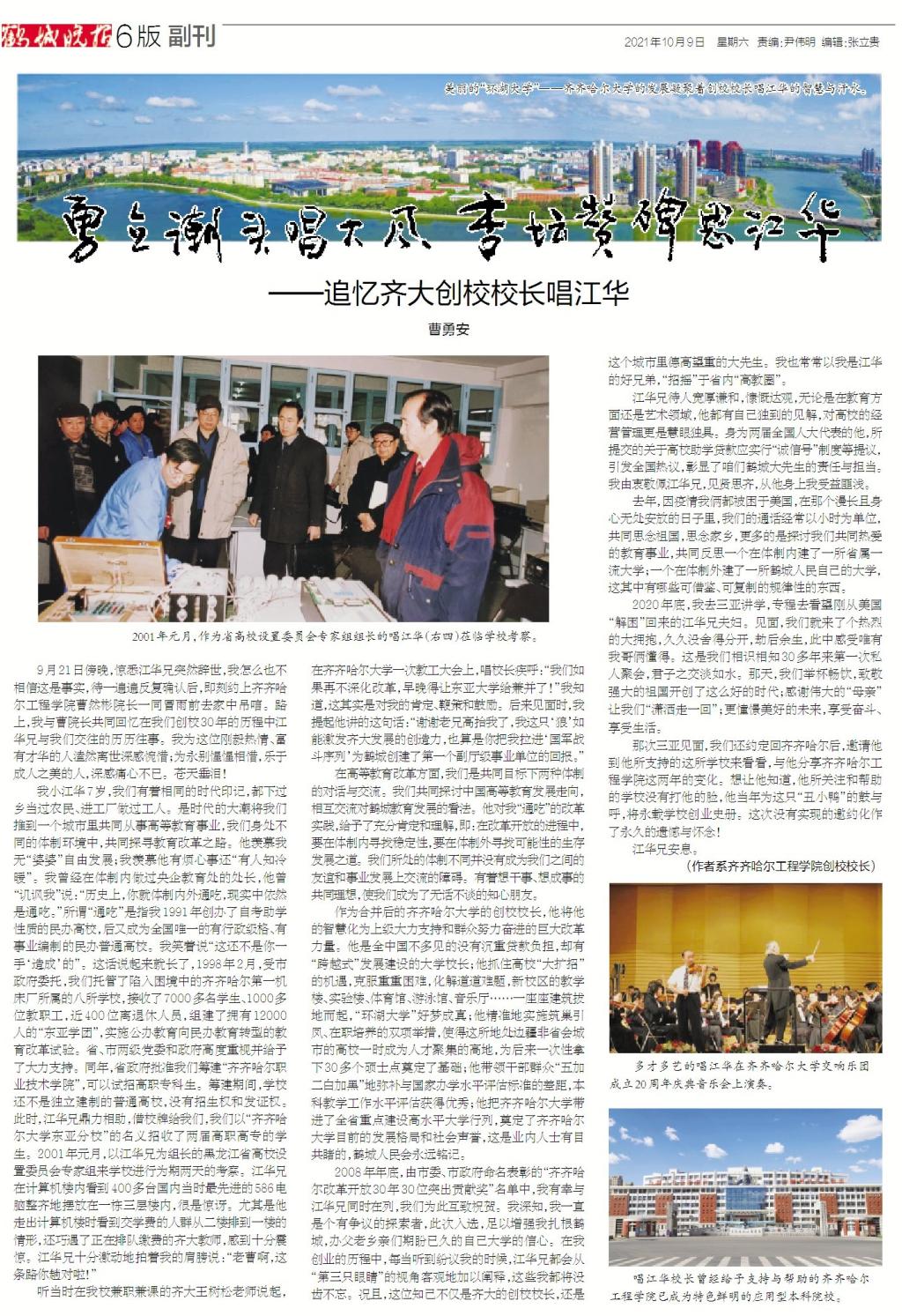(作者系伟德bv1946官网创校校长,本文发表于2021年10月9日《鹤城晚报》副刊)