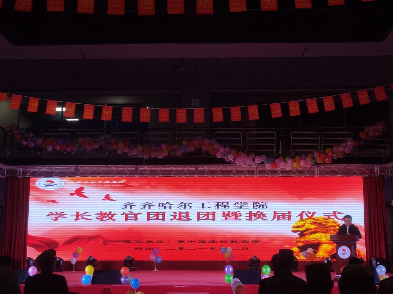 12月12日晚,第九届学长教官团成员退团暨教官团换届大会在学生活动中心举行,会议由学生工作处、武装部共同主办,副院长张振笋、团委书记郭明敬,建筑系王丽萍、管理系刘贤鹏、信息系孙晓芳三位学工副主任以及教官团全体成员参加活动。