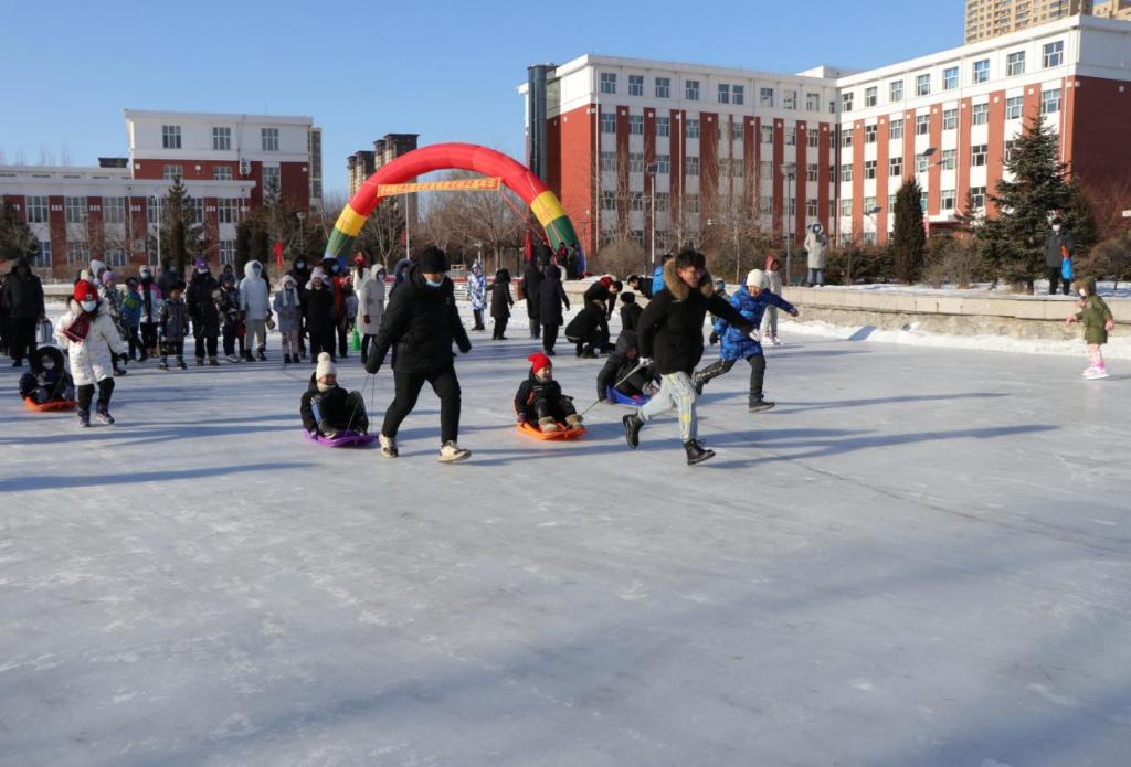 1月17日中午,由学校工会委员会举办的“首届教职工亲子冰上嘉年华”在易湖拉开帷幕,共有60多名教职工的子女参加。理事长曹勇安、工会主席姜岩出席活动。
