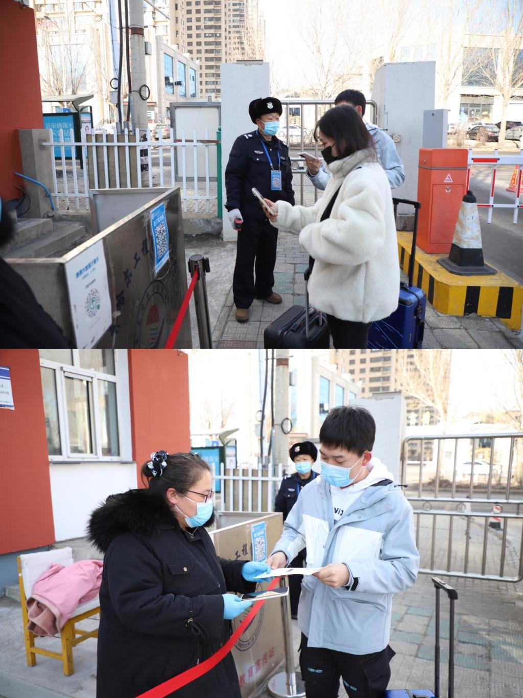 在北门入校现场,管理系辅导员扮演“返校学生”,扫码,校警对其进行测温,检查学生的核酸检测证明。