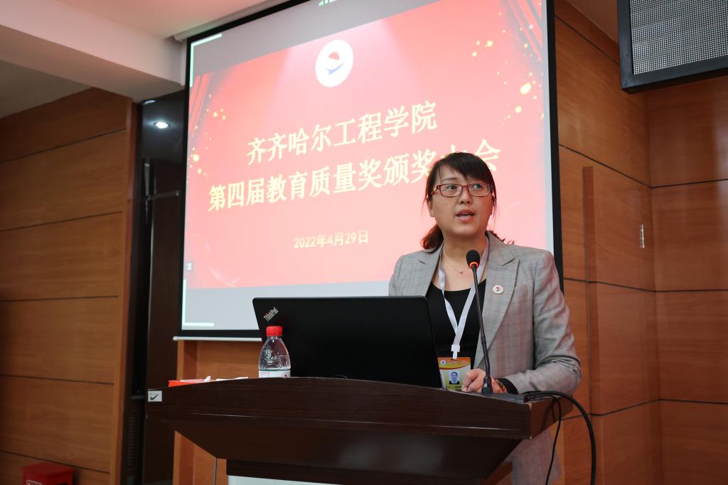 全面质量管理办公室主任孟艳辉主持会议。孟艳辉对第四届教育质量奖总体情况作了介绍,本次教育质量奖获奖教职工共305名,奖励金额总计1792822元,其中教学质量奖总额881761元,育人质量奖总额911061元,人均奖励5878.10元。