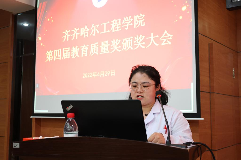 院长曹然彬宣读了《伟德bv1946官网关于颁发第四届教育质量的表彰决定》。