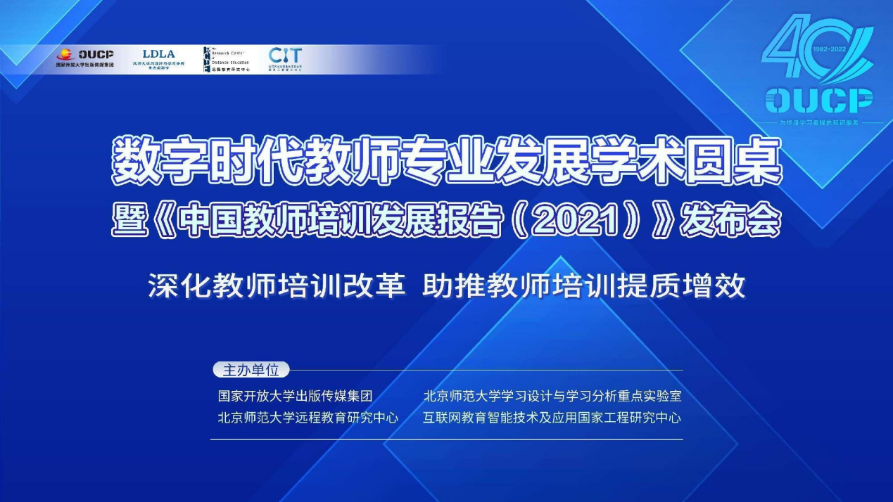 6月25日,数字时代教师专业发展学术圆桌暨《中国教师培训发展报告(2021)》发布会以线上线下结合的方式召开。会议以“深化教师培训改革,助推教师培训提质增效”为主题,来自教育部教师工作司、教师教育研究机构、教师发展中心、教师培训机构、一线学校等机构的领导、专家学者、校长等参加了会议。