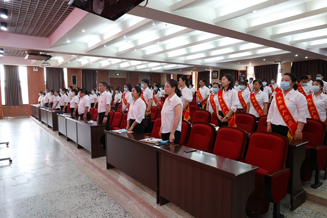 大会在雄壮的国歌声中拉开了序幕。党委委员、组织部长王丹带领全体党员宣誓,重温入党誓词。