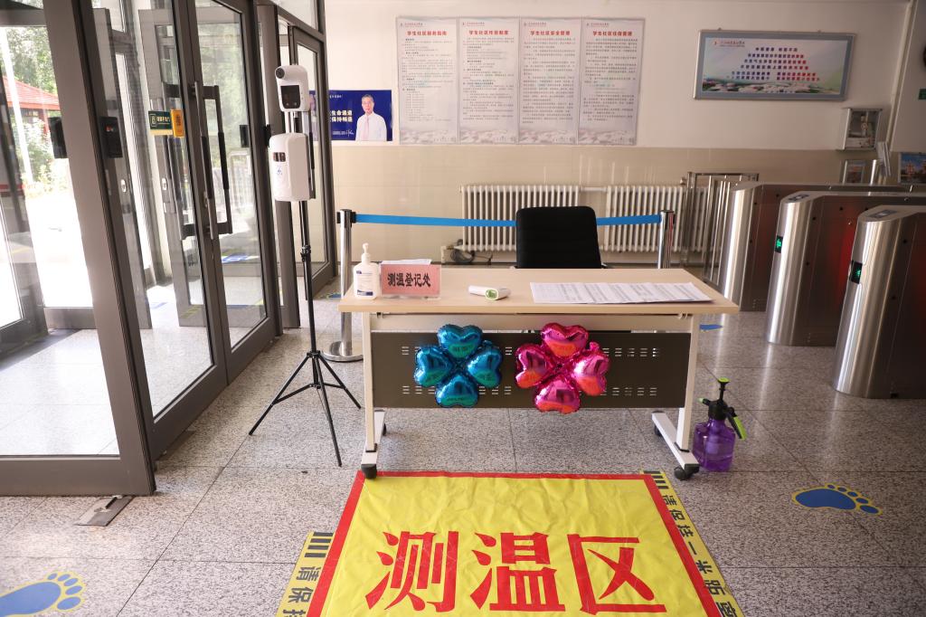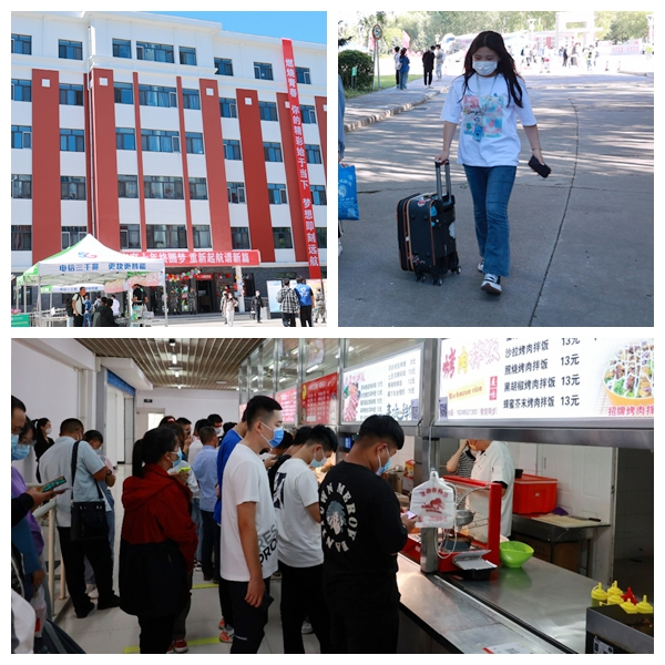 为全力防控疫情,确保返校工作安全有序,学校设置返校专用通道,学生持48小时内核酸检测证明、大数据行程码和龙江健康码绿码,经过体温测量及行李消杀便可进入学校。