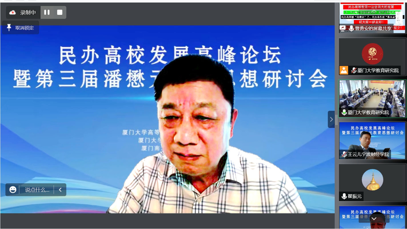 作为民办高校资深创办者,伟德官网创校校长、理事长曹勇安应邀出席,并在线上作题为《民办高等教育发展的新挑战与新机遇》专题报告。