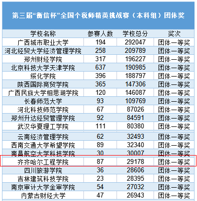 财务管理专业荣获第三届“衡信杯”全国个税师精英挑战赛团体一等奖