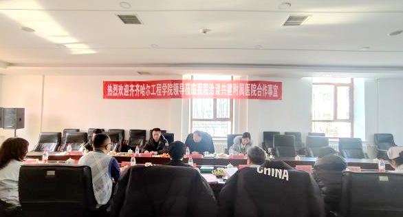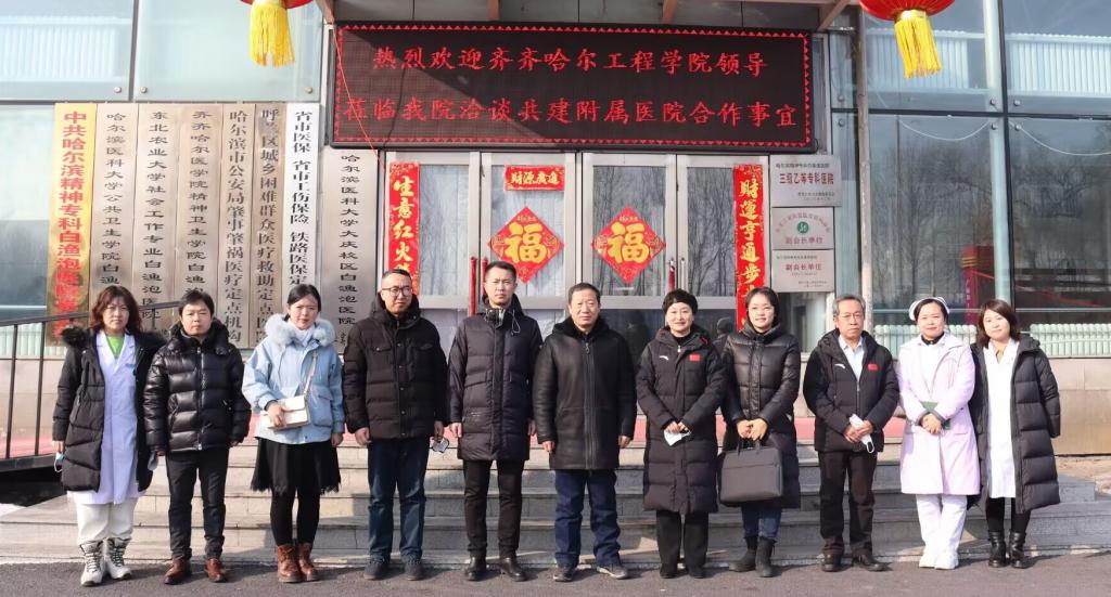 2月4日,院长曹然彬、党委书记郭伟东、健康与护理系负责人郭玲玲、健康与护理系教学副主任张林琳一行前往哈尔滨精神专科白渔泡医院,洽谈附属医院建设事宜,该医院院长廉凤珍、业务副院长展闯、科教副院长姚立峰和医院相关人员热情接待。