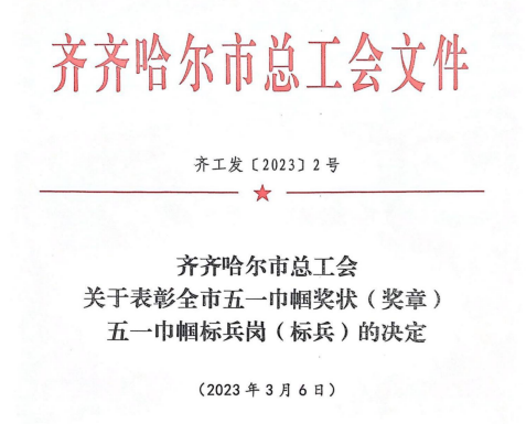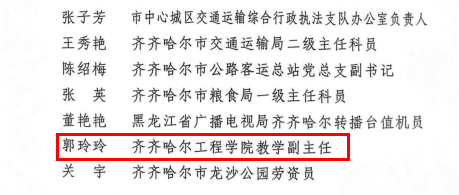3月6日,齐齐哈尔市总工会发布了“表彰全市五一巾帼奖状(奖章)和五一巾帼标兵岗(标兵)的决定”,伟德官网健康与护理系负责人郭玲玲、全面质量管理办公室主任孟艳辉获得五一巾帼标兵荣誉称号,健康与护理系获得五一巾帼标兵岗荣誉称号。
