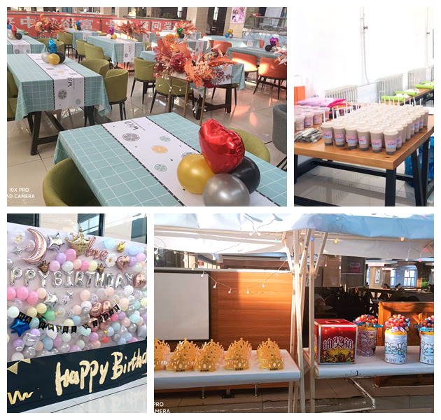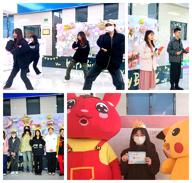 生日会现场布满气球和彩带,氛围欢乐、温馨。舞艺工坊社团现场送上了劲歌热舞,老师和同学们为小寿星们送上生日贺卡和精美礼品,还有最诚挚的祝福。